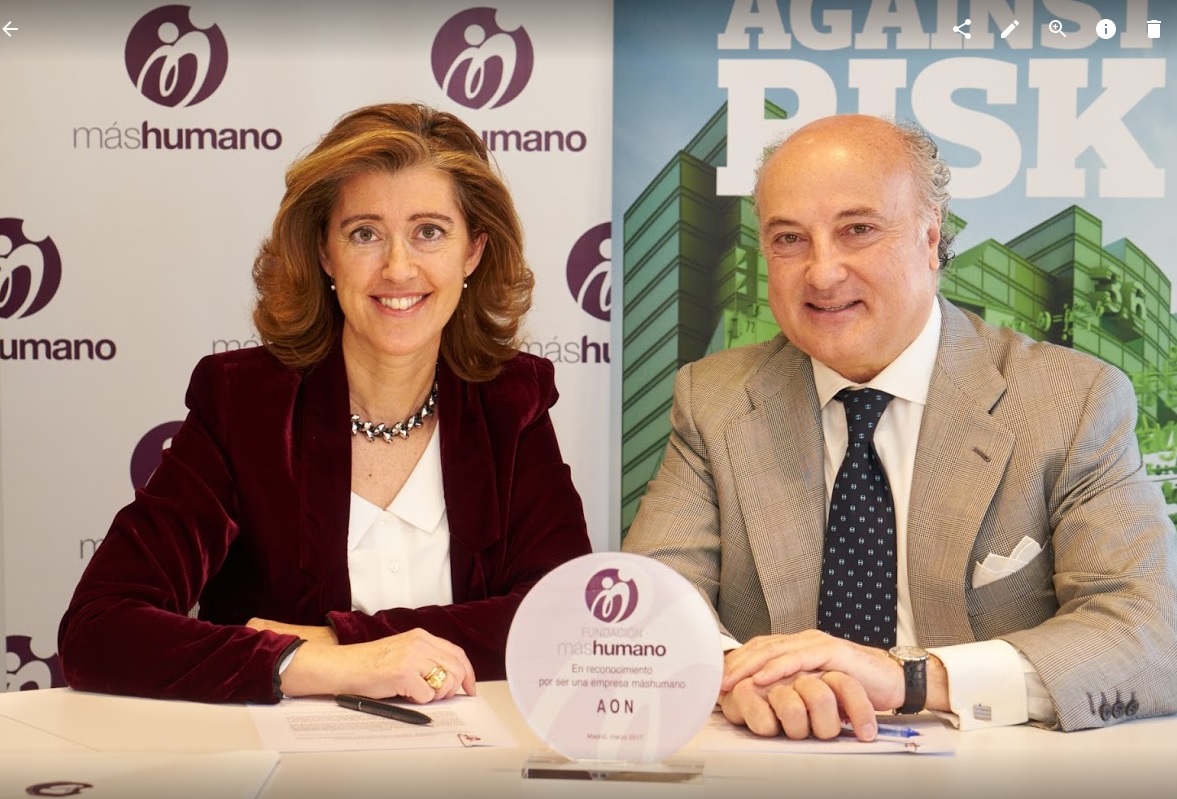 La directora de Recursos Humanos de Aon, María Orellana agradece a la fundación la oportunidad de “pertenecer a la Red de Empresas máshumano, por ser una buena plataforma donde poder compartir experiencias y objetivos comunes basados en las personas que forman las organizaciones con otras grandes compañías”. Además, la directora de Recursos Humanos de la multinacional recuerda que “en Aon estamos muy orientados a trabajar en la salud de nuestros empleados y en el bienestar 360º”.