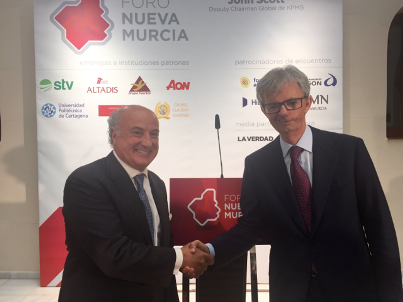 Aon ha participado en la última edición del Foro Nueva Murcia, de la que es patrona, y que en esta ocasión ha contado con la intervención especial de John Scott, Deputy Chairman Global de KPMG. Pedro Tomey, CRO de Aon y presidente del Consejo de Patronos del Foro Nueva Murcia, agradeció en el encuentro la asistencia de John Scott y del Consejero Delegado de KPMG, Hilario Albarracín, así como la numerosa presencia de todos los asistentes invitados. Destacó la trayectoria del Foro Nueva Murcia durante estos cinco años en la que han intervenido más de 40 personalidades del ámbito político, social, económico, del arte y la cultura, así como de la ciencia y la investigación, señalando la oportunidad de la elección de los invitados conferenciantes, y en este caso la de John Scott, prestigioso analista internacional.