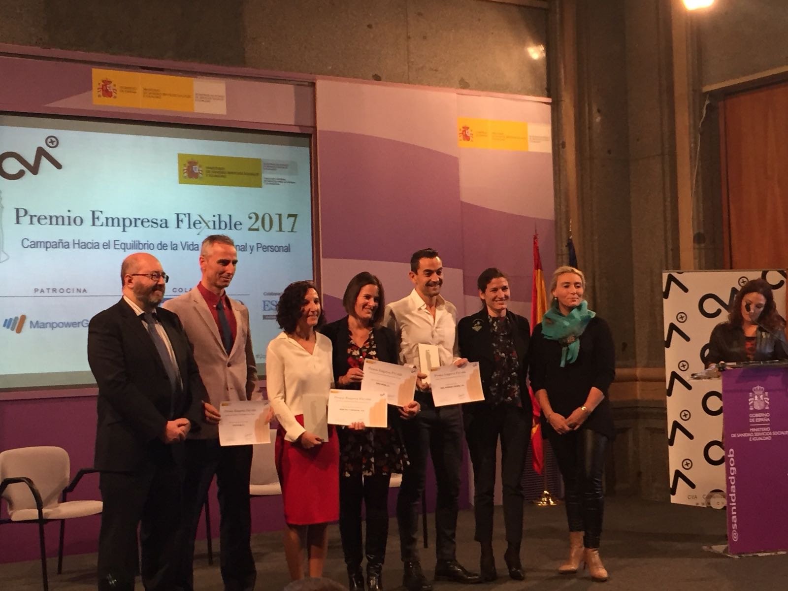 Aon ha sido reconocida con el Premio Empresa Flexible 2017 nacional en la categoría de Gran Empresa por su política de conciliación y flexibilidad. María Orellana, directora de RRHH de Aon, recibió el premio de manos del subdirector general de Familias del Ministerio de Sanidad, Servicios Sociales e Igualdad, Félix Barajas, durante las Jornadas de Flexibilidad 2017 en las que se han analizado los nuevos modelos organizativos de las empresas y cómo estas generan valor.