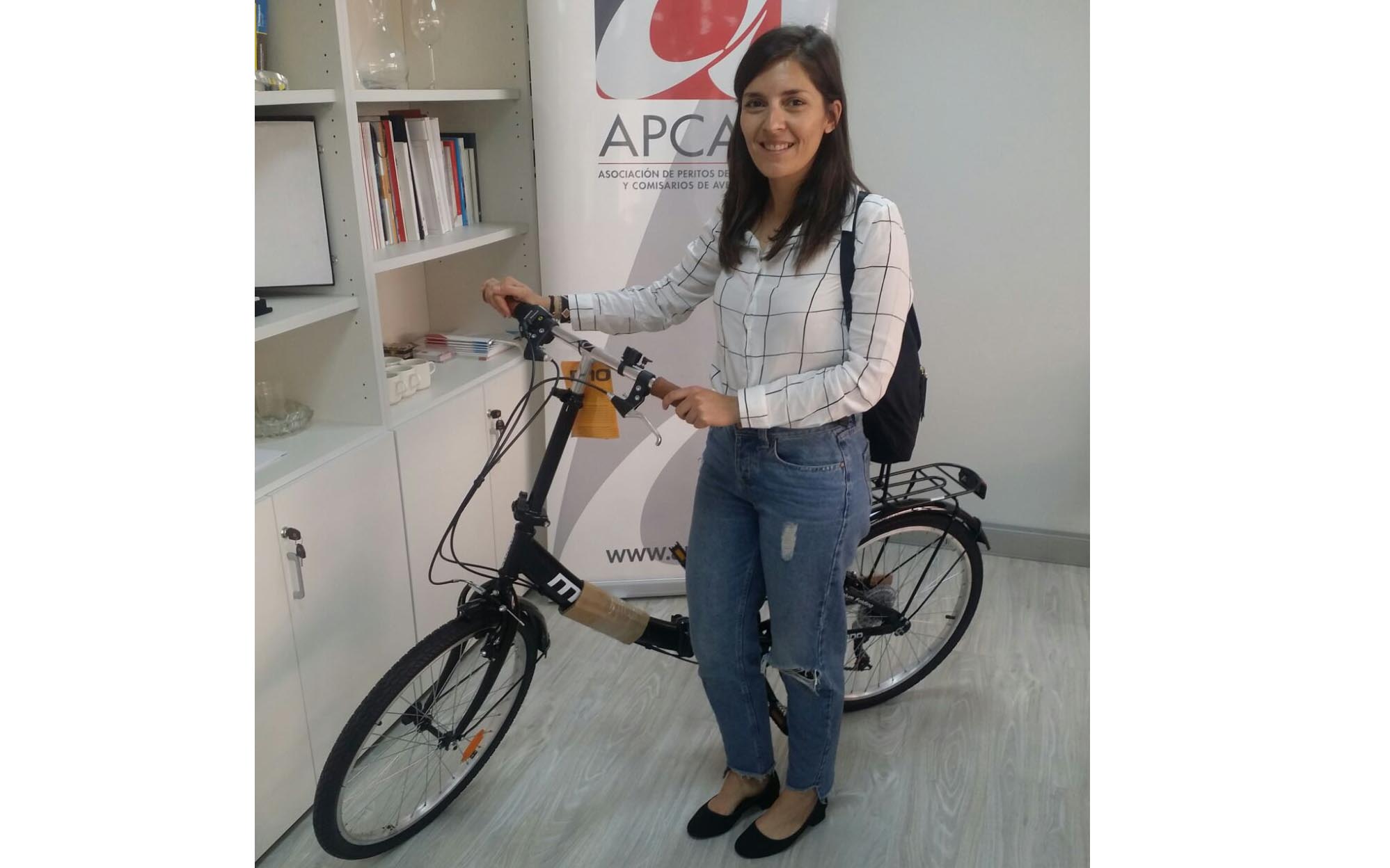 Apcas ha entregado una bicicleta desmontable de la marca Moma a Leyre Alcalde, ganadora del I Concurso de la Semana Europea de la Movilidad. Ha sido elegida por unanimidad por un jurado formado por miembros de la Comisión de Seguridad Vial y Movilidad de la asociación.