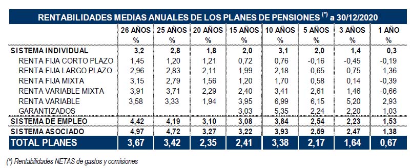 El número total de cuentas se sitúa en los 9,5 millones a fecha de diciembre con un número de partícipes en torno a 8 millones. El volumen de activos aumentó un 1,8% (2.100 millones) para el conjunto de 2020.