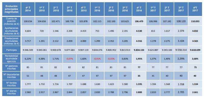 Las aportaciones a Planes de Pensiones crecen un 5,12% en el último trimestre de 2017