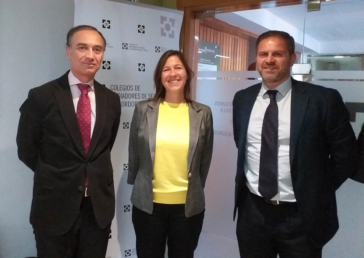 En la firma del acuerdo estuvieron presentes el director de la Delegación Sur, José Manuel García Rivero, y la presidenta del Colegio de Sevilla, Elena Romero.