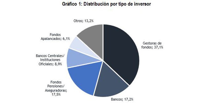 La demanda final se ha repartido entre 288 cuentas inversoras. Por tipo de inversor, destacan las gestoras de fondos con el 37,1%, aseguradoras y Fondos de Pensiones con el 17,5%, las tesorerías bancarias (17,2%) y los bancos centrales e instituciones oficiales (8,9%).