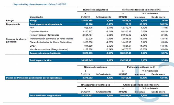 Las aseguradoras gestionan 241.000 millones a finales de diciembre, un 4,9% más que hace un año