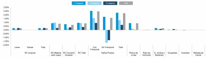 En otras garantías la frecuencia siniestral tuvo una evolución prácticamente inapreciable en porcentajes.