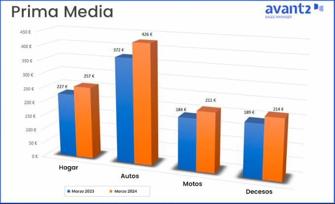 Comenzando por Hogar, la empresa constata que la prima media de nueva producción ha continuado su aumento en marzo de 2024, situándose en 257 euros sobre un total de 7.054 pólizas emitidas en Avant2 Sales Manager. Esto supone un crecimiento del 13% respecto a marzo de 2023. En Hogar, las 3 modalidades ('Estándar', 'Básica' y 'Premium') crecen a doble dígito.
