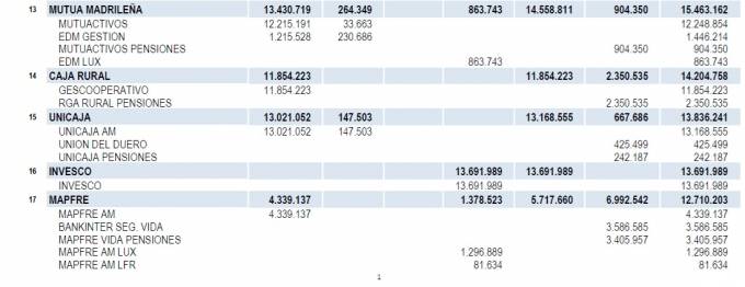 Mapfre, en 17ª posición -también bajando dos puestos- suma 12.710 millones de ahorro gestionado, de los que 6.992 corresponden a Fondos de Pensiones.