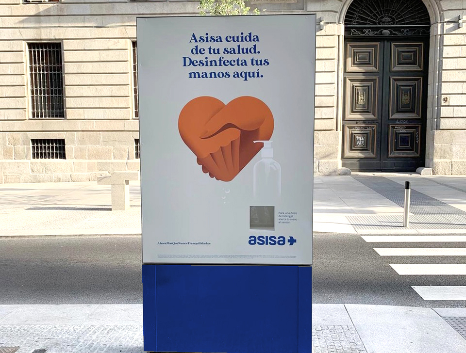 Asisa ha instalado una decena de dispensadores automáticos de gel hidroalcohólico en diferentes lugares de la vía pública de Madrid, iniciativa que se enmarca dentro de la campaña 'AhoraMasQueNuncaTranquilidad' con la que la compañía ofrece información y recomendaciones para cuidar la salud durante el confinamiento y su desescalada.