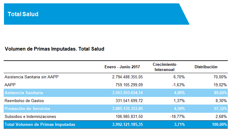 En el primer semestre del año el ramo de Salud suscribió 3.992 millones de euros en primas, con un avance del 3,7% respecto al mismo periodo de un año antes. Estos buenos datos se sustentan en un avance del 6,7% de la Asistencia Sanitaria sin AAPP, según los datos publicados por ICEA.