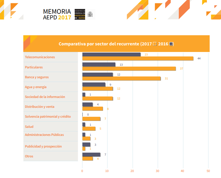 Lo recoge la Agencia Española de Protección de Datos (AEPD) en su memoria de 2017, en la que señala sobre los corredores de seguros que la infracción más común se refiere a la gestión de nuevas contrataciones de antiguos clientes sin su consentimiento.