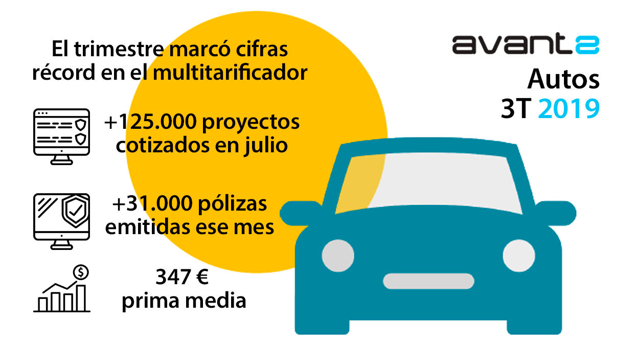 Al cierre del tercer trimestre de 2019, la producción de Avant2 ha alcanzado las 83.498 pólizas emitidas de Autos, lo que supone un crecimiento interanual del 46% y un récord histórico para el multitarificador de Codeoscopic, que acaba de publicar su último barómetro trimestral.