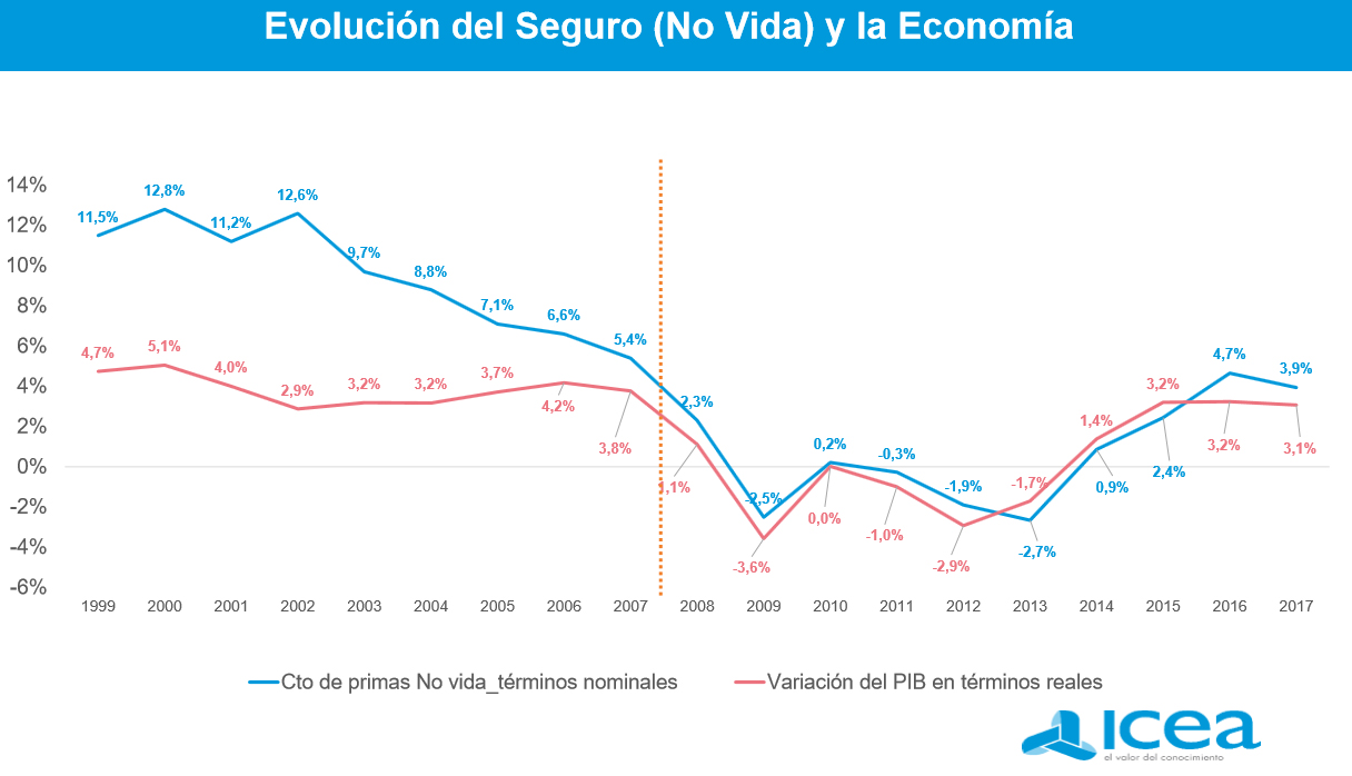 Así lo dijo el director del Área de Estudios y TI de ICEA, Antonio Martín, durante la celebración del VI Congreso de CIOs de Seguros celebrada ayer. Respecto al número de la población explicó que desde 2007 y 2008 se ha producido un cambio radical en el seguro. Hasta esos años el sector crecía muy por encima de la economía, pero a partir de ahí, el seguro va totalmente en paralelo con la economía, indicó.