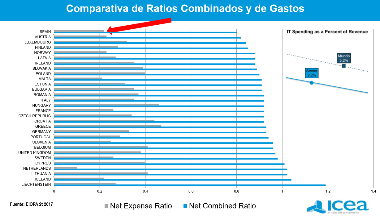 Entre su visión del sector apuntó que si una compañía está muy vinculada a crecimientos o reducciones notables de gastos sufrirá enormemente, especial en el ramo de Autos. Será más en este negocio porque estará vinculado a la conducción autónoma y se prevé que las primas vayan mermando en los próximos 15 años alrededor de un 50%. Indicó que con esta caída de primas "no somos capaces de reducir los gastos" y la eficiencia va en la proporción de la pérdida de tamaño. Con esto, lo más seguro, es que a futuro "empecemos a tener muchos problemas asociados a la rentabilidad si el sector empieza a decrecer".