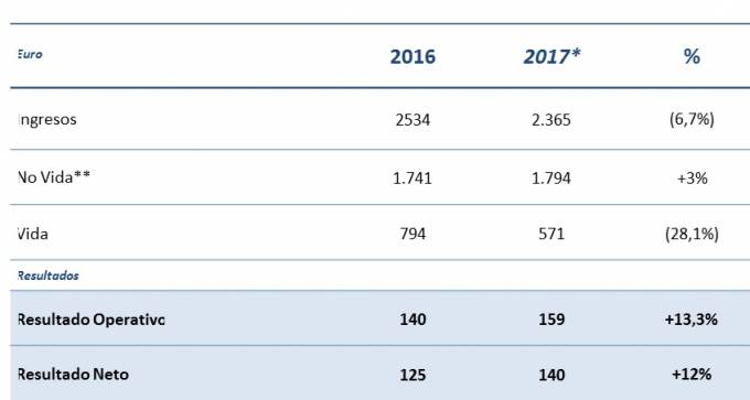 El negocio total de No Vida creció un 3,1% hasta situarse en 1.794 millones de euros. En Pensiones el patrimonio gestionado se situó en 920 millones, un 4,5% más.