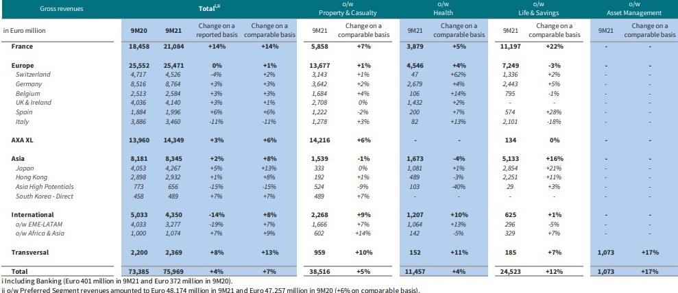 A nivel mundial, el Grupo AXA ha aumentado sus ingresos totales un 7% en los nueve primeros meses del año, elevándose hasta los 75.969 millones de euros. Desglosados, No Vida ha contribuido con 38.516 millones (+5%); Salud, con 11.457 millones (+4%); Vida, con 24.523 millones (+12%); y la gestión de activos, con 1.073 millones (+17%).