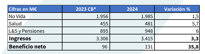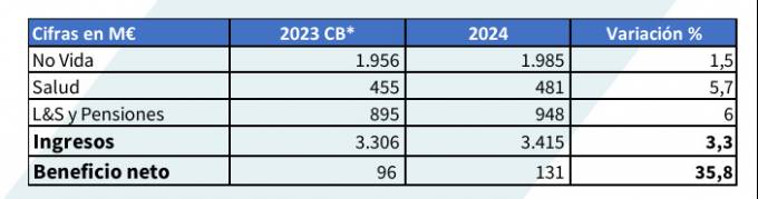AXA cerró 2024 con un volumen total de ingresos de 3.415 millones de euros, lo que muestra un crecimiento del 3,3% respecto al mismo periodo del año anterior. Apunta la entidad que mejoró en todas las líneas de negocio: No Vida registra un total de 1.985 (+1,5%), el negocio de Salud se situó en los 481 millones (+5,7%) y Vida y Pensiones fue la línea de mejor comportamiento hasta los 948 millones (+6%).