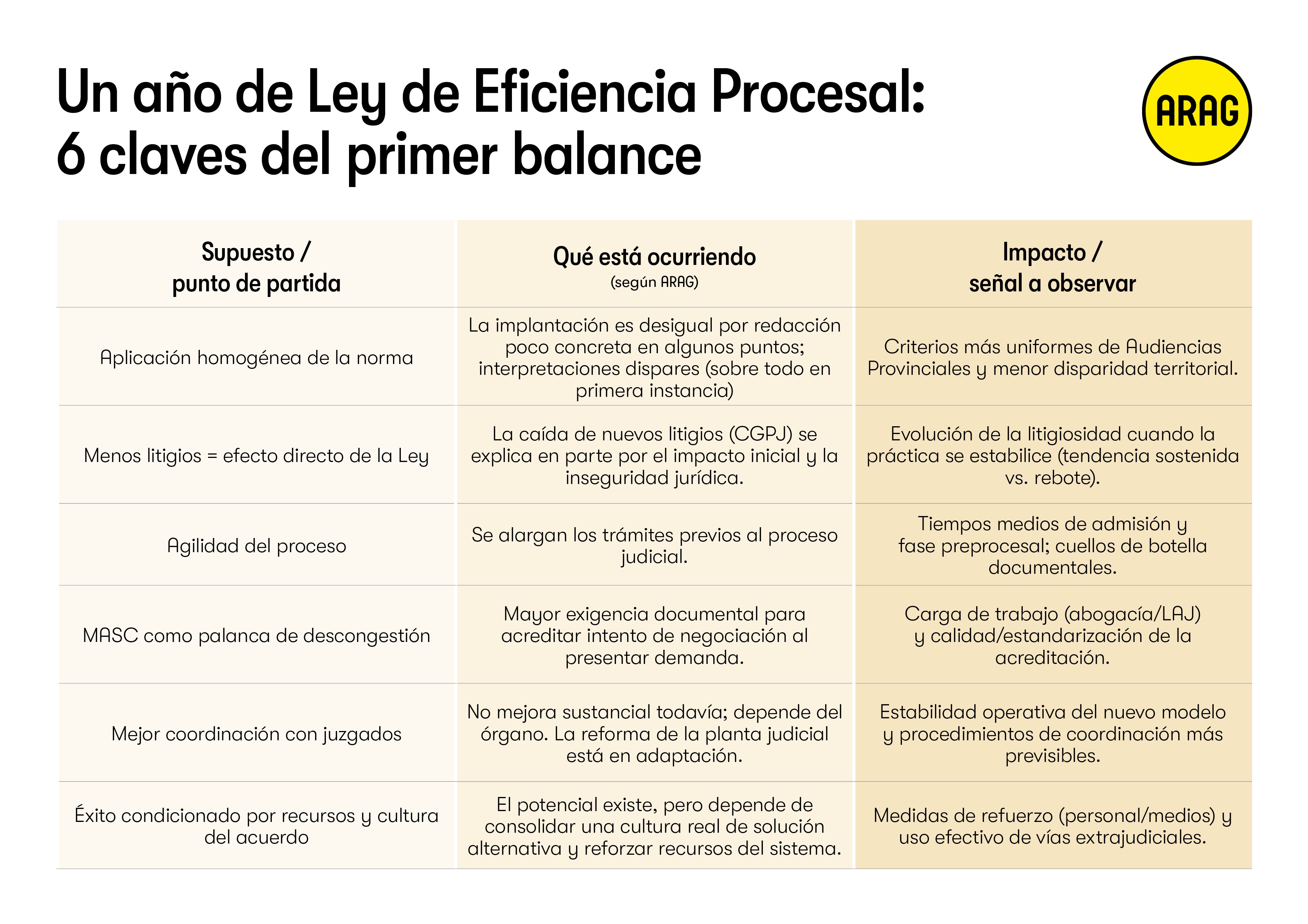 Un año después de la entrada en vigor de la Ley de Eficiencia Procesal, Juan Carlos Lopera, director de Asesoría Jurídica de Siniestros (AJS) de ARAG, considera que muchos de los reparos iniciales a la Ley se han confirmado.
