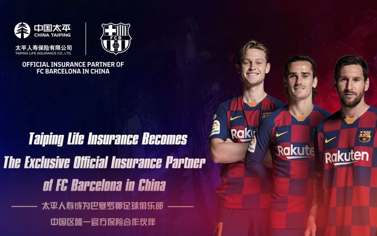 El F.C. Barcelona ha firmado un acuerdo de patrocinio con Taiping Life Insurance, aseguradora china con sede en Shanghái. La compañía se convierte así en patrocinador regional del club durante los próximos tres años y medio, y pasa a ser partner oficial del Barça en la categoría de seguros en China.