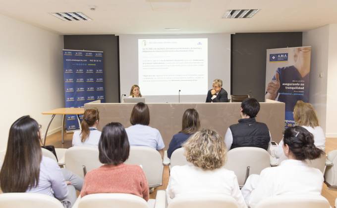 Beatriz Martínez, abogada y jefa del departamento de Siniestros de RCP de A.M.A., dirigió la sesión y explicó, con numerosos casos prácticos, la importancia del consentimiento informado y la correcta cumplimentación y conservación de las historias clínicas.