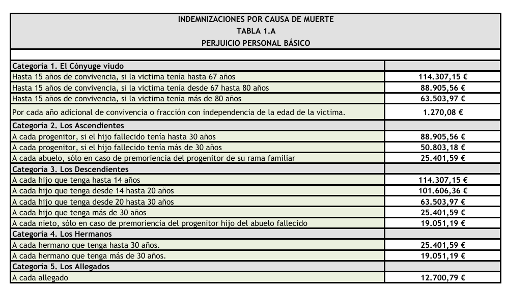 La Dirección General de Seguros y Fondos de Pensiones (DGSFP) ha actualizado las cuantías de las indemnizaciones del sistema para valoración de los daños y perjuicios causados a las personas en accidentes de circulación. Según estos datos, que se pueden ver en la web del supervisor, las indemnizaciones tanto para accidentes con terminación en muerte y aquellos que dejan secuelas, permanentes o temporales, tendrán una subida este año del 2,8%.