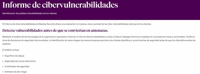 Beazley ha elaborado un nuevo 'Informe de Cibervulnerabilidades' (en inglés se conoce como 'Security Posture Report'). Se trata de una herramienta para que las empresas puedan evaluar de forma objetiva y no invasiva la exposición real a los ciberriesgos a partir del análisis de las tecnologías visibles desde internet. Por tanto, permite a las empresas obtener una visión clara y objetiva de sus debilidades externas.