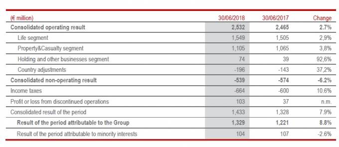 Grupo Generali ha obtenido un beneficio neto en el semestre de 1.329 millones de euros, lo que pone un incremento del 8,8% gracias "al resultado no operativo y a las ganancias derivadas de disposiciones durante este mismo periodo", según indica la compañía.