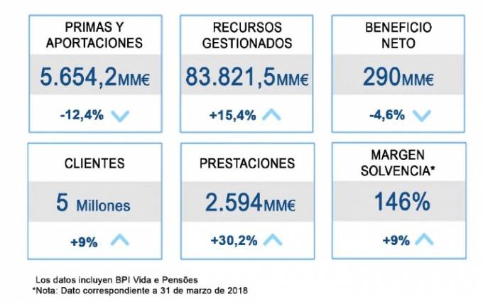 En cuanto al volumen de recursos gestionados ascendió a 83.821,5 millones de euros, un 15,4% más. De éstos, 53.803,8 millones corresponden a seguros de Vida. El resto, 30.017,7 millones, corresponden a planes de pensiones y EPSV.