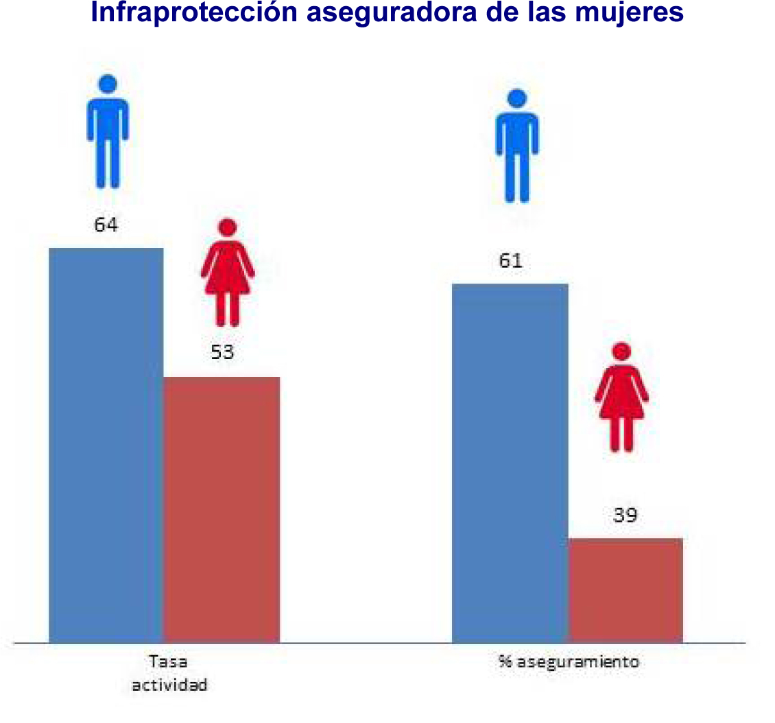 La brecha de protección financiera entre hombres y mujeres se mantiene también en el seguro de Vida Riesgo. Según datos de AXA, en la actualidad sólo el 39% de los seguros de Vida Riesgo son suscritos por mujeres, a pesar de que la tasa de actividad femenina se sitúa por encima del 53%, según los datos de la EPA a cierre de 2016. En el caso de los hombres, su tasa de actividad es del 64% y 6 de cada 10 seguros de Vida Riesgo se realizan por varones. Mientras que la diferencia en la tasa de actividad (que mide personas con empleo y en búsqueda de trabajo) entre hombre y mujeres es de apenas 10 puntos porcentuales, el nivel de aseguramiento entre ambos dista 22 puntos.