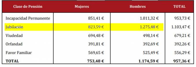 Las pensiones de jubilación de las mujeres han alcanzado en septiembre los 823,59 euros mensuales lo que supone de medida unos 451,89 euros menos que las de los hombres que se sitúan en 1.275,48 euros mensuales, según se desprende de los últimos datos facilitados por la Seguridad Social. Durante el último año esta brecha ha permanecido estable alrededor de los 450 euros.