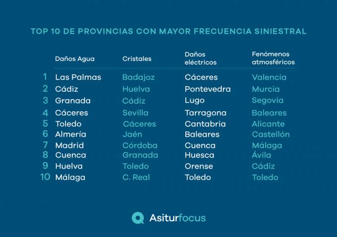 Cádiz, Huelva y Badajoz son las tres provincias españolas con mayor siniestralidad según el Observatorio de Siniestros de Asitur que analiza los siniestros de Hogar en nuestro país durante los últimos 12 meses. En el lado opuesto se sitúan las tres provincias vascas, Guipúzcoa, Álava y Vizcaya.
