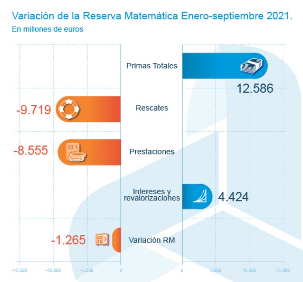 La reserva matemática de los seguros de Ahorro ha disminuido en 1.265 millones respecto al año anterior, bajada debida en su totalidad a los seguros con garantías de interés, que decrecieron 4.155 millones, mientras que los seguros vinculados a activos aumentaron 2.890 millones de euros según datos de ICEA.