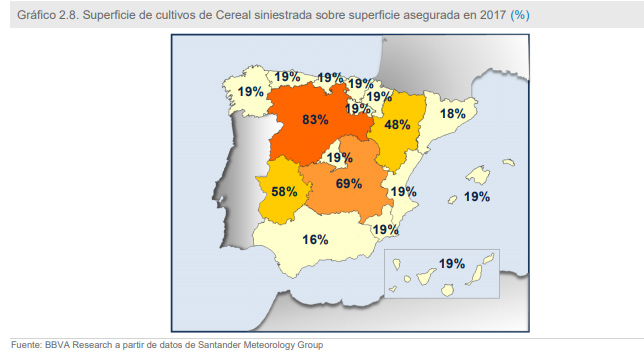 hectáreas han tenido un siniestro y el total de indemnizaciones pagadas por Agroseguro suma 712 millones. Según el BBVA Research la tendencia observada es la de agravar más esta situación en los próximos años.