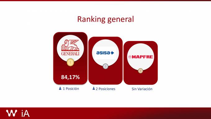En el ranking global, Generali se alza como líder en presencia digital con una puntuación del 84,17%, desbancando a ARAG, que cae hasta la undécima posición tras liderar la edición anterior.