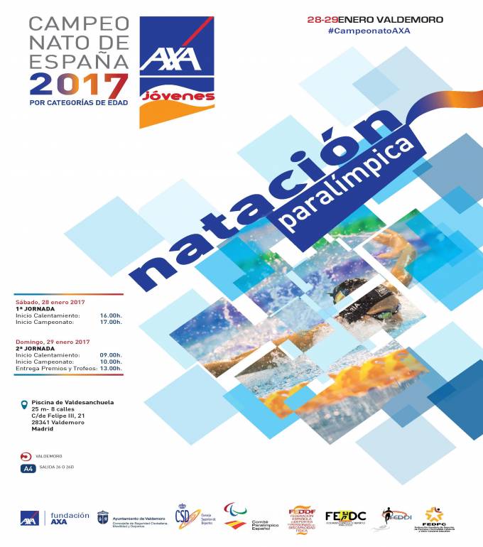 145 deportistas procedentes de 15 comunidades autónomas competirán este fin de semana en el Campeonato AXA de Promesas Paralímpicas de Natación para menores de 18 años, que se celebrará en la piscina cubierta de 25 metros de Valdesanchuela (Valdemoro, Madrid). Está previsto que acudan 74 nadadores de la Federación Española de Deportes de Personas con Discapacidad Física, 34 de la de discapacidad Intelectual (Feddi), 22 de la de Ciegos (FEDC) y 15 de la de Parálisis Cerebral y Lesión Cerebral (Fedpc). De ellos, 90 son niños y 55, niñas. Esta competición se enmarca dentro del Proyecto AXA de Promesas Paralímpicas de Natación, creado en 2011, cuyo objetivo es servir de paso previo para los deportistas que posteriormente se puedan ir incorporando al Plan ADOP y formar parte del Equipo Paralímpico Español en futuras competiciones internacionales.