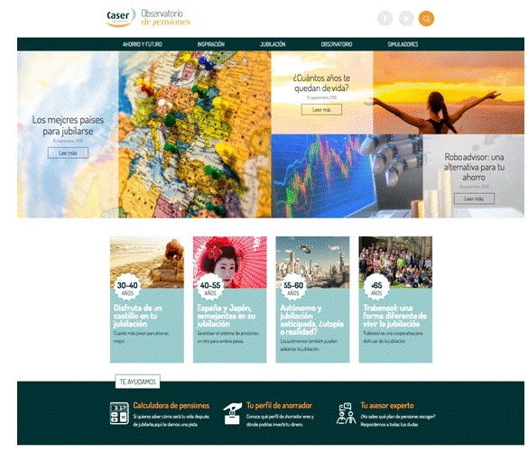 Con este rediseño se busca hacer la plataforma más accesible e incluso acercarse a los jóvenes, poco preocupados por su jubilación. El site recoge también todos los informes del Observatorio de Pensiones, el análisis bianual sobre el mundo de las pensiones que realiza Caser