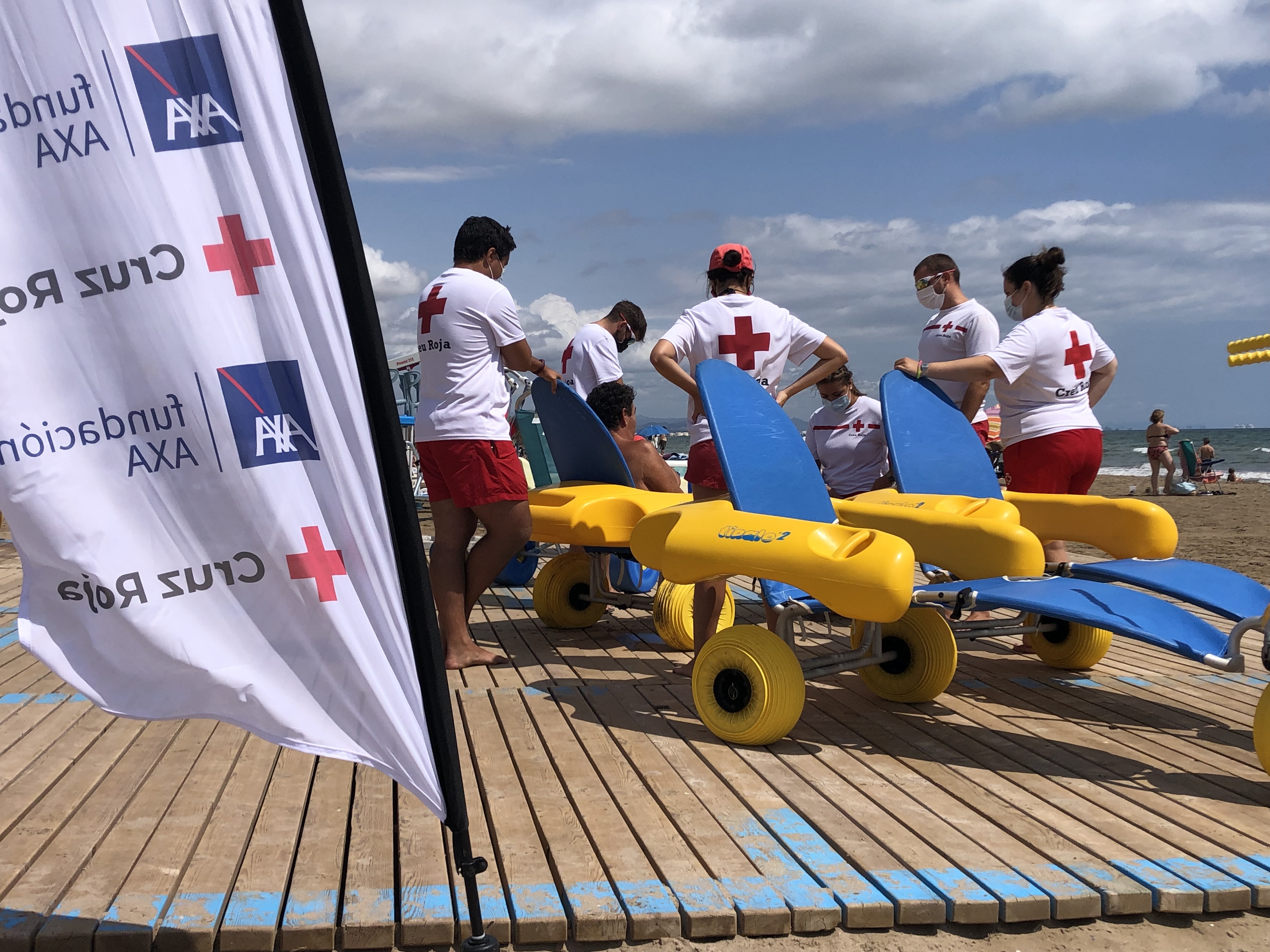 Casi 3.000 personas con discapacidad o dependencia han disfrutado este verano de las playas de Chiclana, Denia, Valencia, Gandía, Santander, Tenerife, Las Palmas y Torremolinos gracias al acuerdo de Fundación AXA y Cruz Roja.
