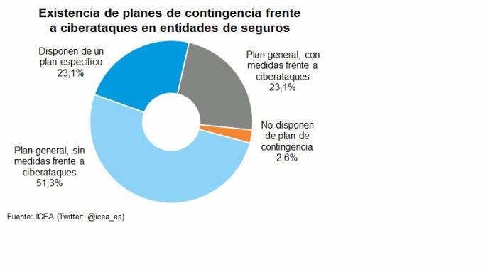 ICEA ha realizado un estudio sobre la ciberseguridad en entidades de seguros, en el que se observa que el 23,1% de las aseguradoras participantes disponen de planes específicos para afrontar ciberataques. Un número igual de entidades indicó que, aunque no disponen de un plan específico, sí que tienen medidas concretas dentro de sus planes generales.