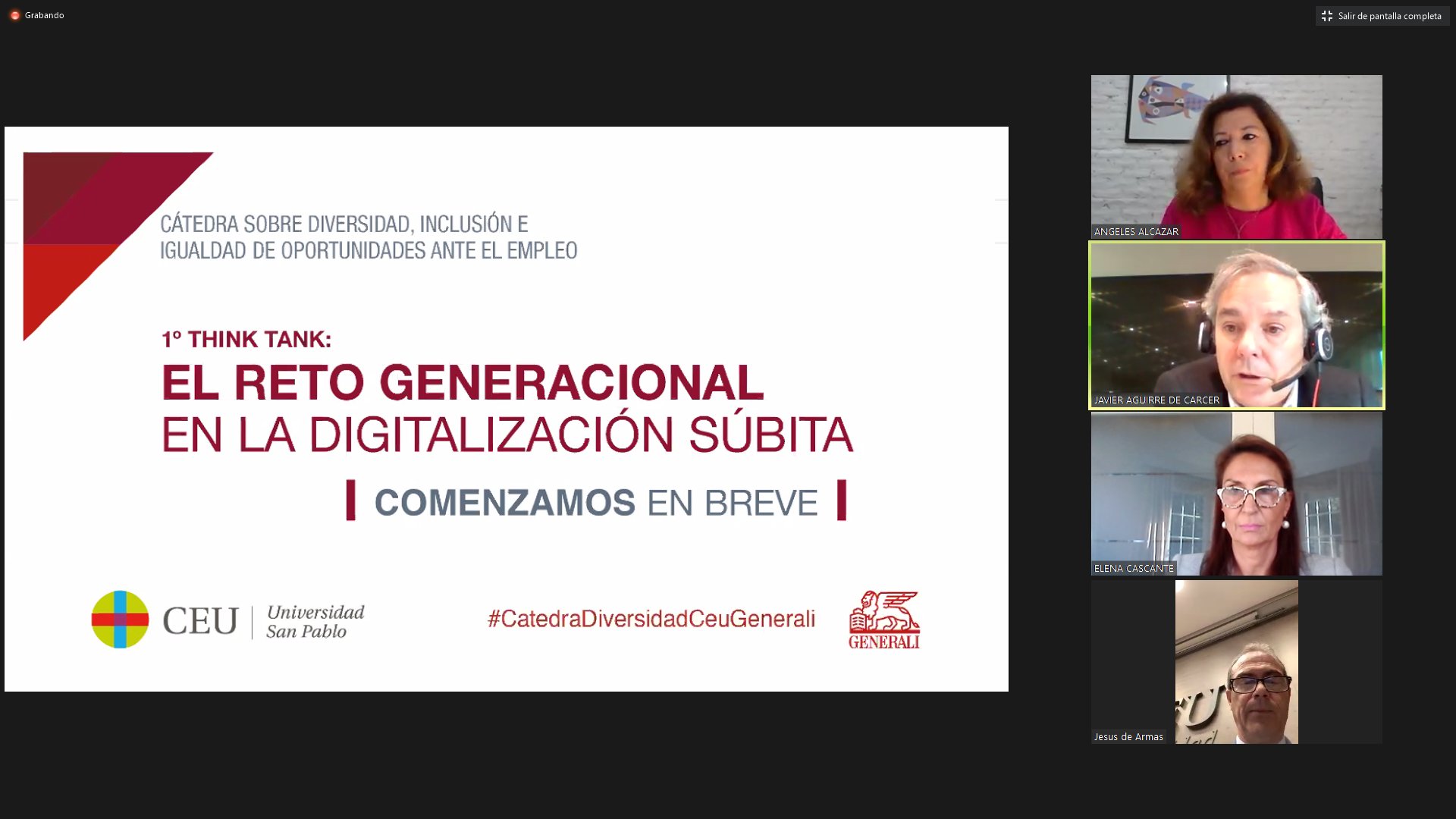 Valorar el reto generacional es el segundo objetivo. "El segundo objetivo de nuestra cátedra es precisamente valorar el reto que el relevo generacional representa para las empresas en la actualidad", ha reconocido Javier Aguirre de Cárcer, director de Comunicación de Generali España, que ha añadido: "Esta cuestión adquiere una nueva dimensión al contemplar la brecha digital a la que nos enfrentamos en el seno de la empresa a raíz de la digitalización súbita que hemos vivido en 2020".