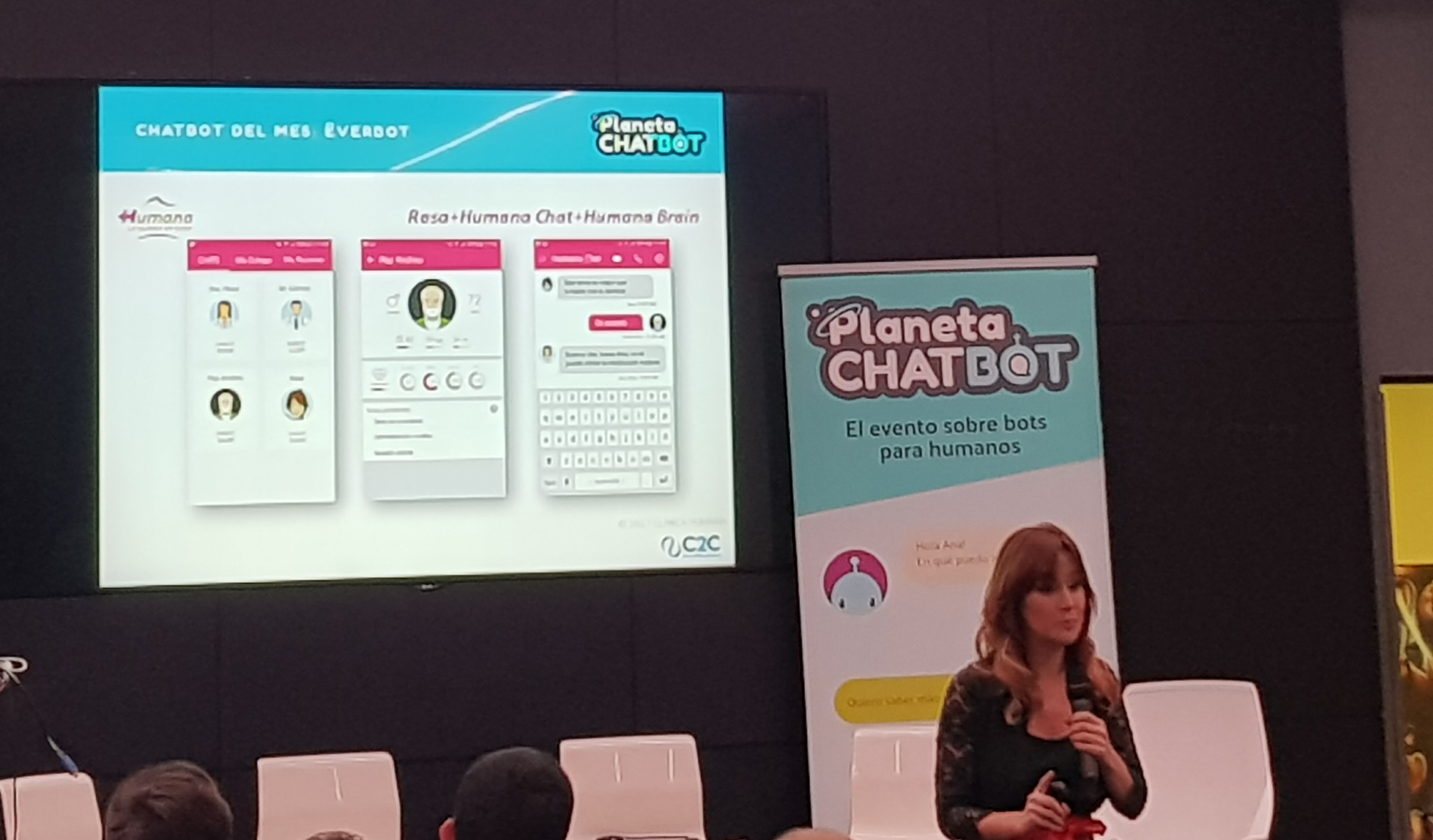 dentro de la industria 4.0. Emma Bernardo, responsable de Comunicación de C2C the eHealth Company, detalló el funcionamiento de Evebot, un bot conversacional que tiene la función de hacer seguimiento y control de pacientes crónicos en el domicilio, como si fuera un asistente virtual. Mostró cómo se lleva a cabo en Clínica Humana de Palma de Mallorca y donde 'Rosa' (nombre del bot que se relaciona con los enfermos) monitoriza a casi 1.000 pacientes al día.
