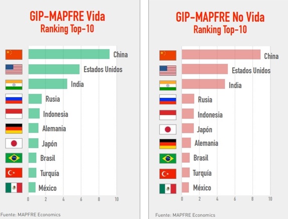 China, Estados Unidos e India son los mercados con mayor potencial asegurador, según el Índice Global de Potencial Asegurador GIP del servicio de Estudios de Mapfre – Mapfre Economics-.