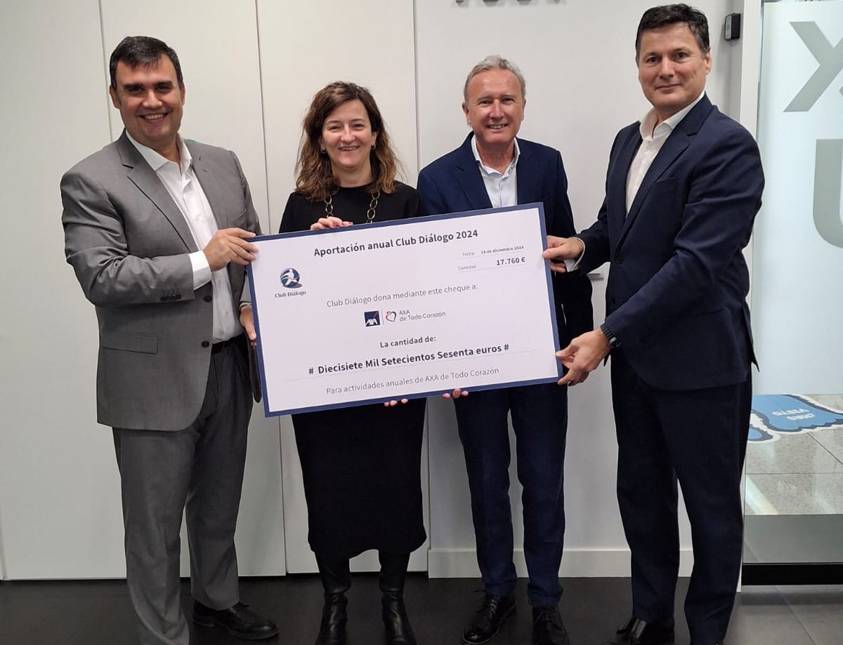 El Club Diálogo de Agentes de AXA ha donado casi 18.000 euros a AXA de Todo Corazón, la asociación de voluntariado corporativo de todas las entidades del Grupo AXA en España. Roberto Neira, presidente del Club Diálogo, considera que "este cheque es una muestra más del fuerte compromiso de los agentes de AXA con la labor que lleva a cabo AXA de Todo Corazón para lograr una sociedad más inclusiva y un planeta más sostenible".