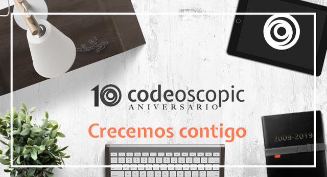 Codeoscopic estrena imagen corporativa para celebrar su 10º aniversario, para el que prepara diversas acciones que desarrollará a lo largo de los próximos meses. En la nueva imagen incorpora a su logo corporativo la efemérides, y en los próximos meses lanzará promociones, sorteos y diversas acciones con sus públicos, que articularán la celebración. "Queremos que nuestros clientes sean parte de esta celebración, porque son ellos los que le han dado sentido a nuestro trabajo y quienes articulan nuestro crecimiento", afirma Ángel Blesa, director general de Codeoscopic.