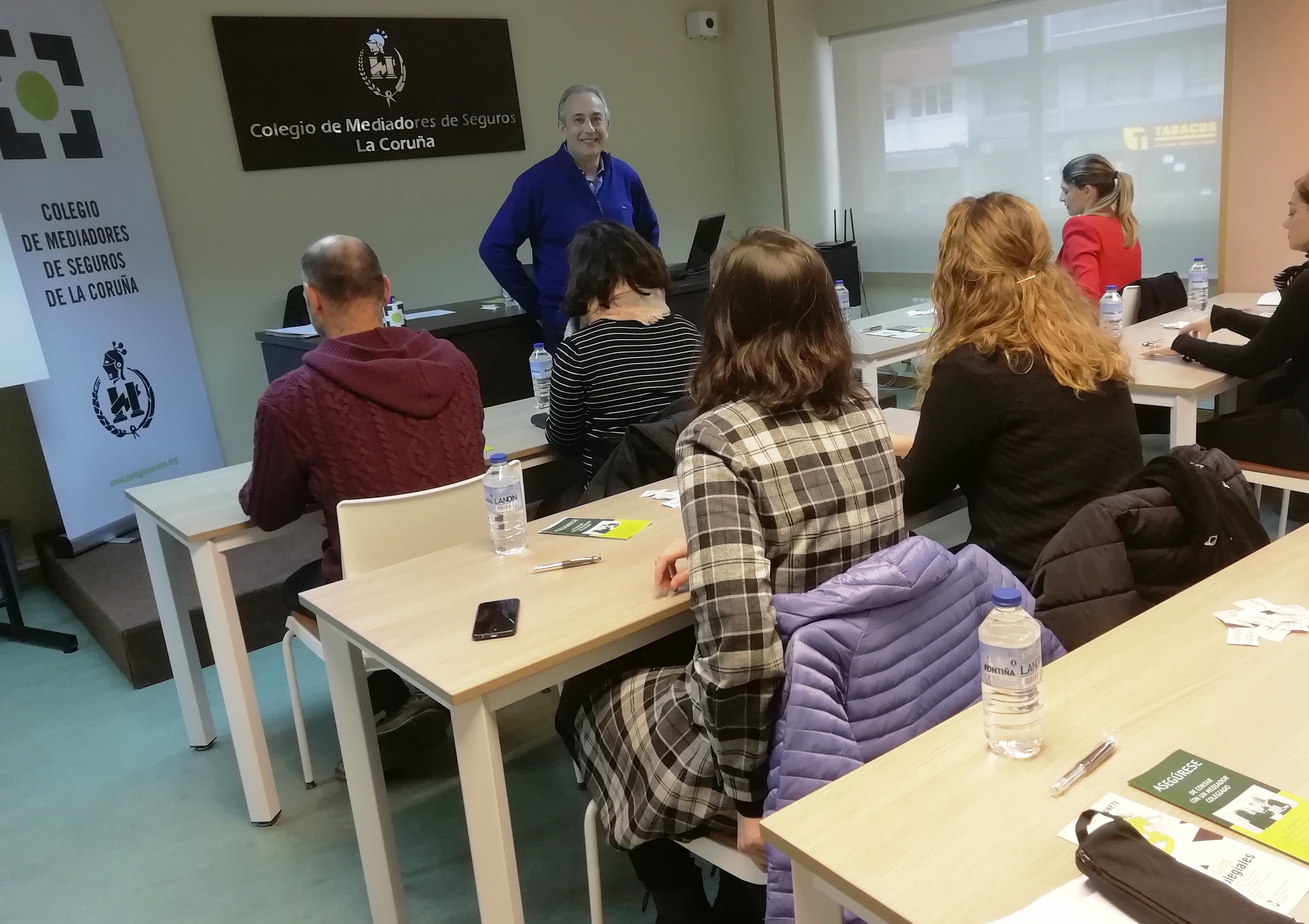 El Colegio de Mediadores de La Coruña celebró la pasada semana la quinta clase presencial del Curso Grupo B intensivo con la participación de Juan Carlos Pereira, responsable de Empresas y Previsión Social Complementaria Territorial de AXA Seguros. En su explicación abordó cuestiones sobre los seguros de Daños, el seguro de Incendios y el seguro de Responsabilidad Civil.