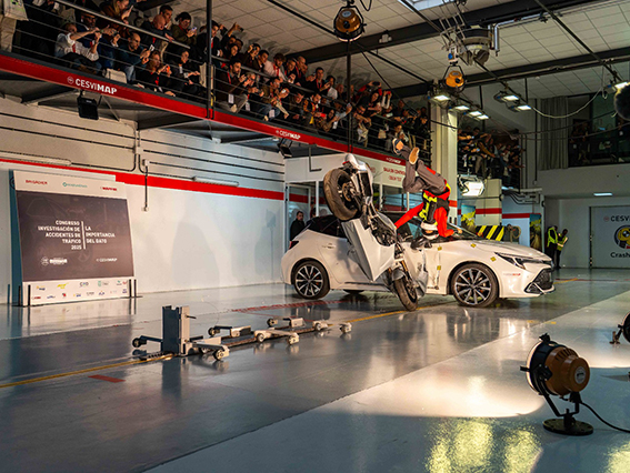 En la jornada inaugural, celebrada en las instalaciones de Cesvimap, se han realizado dos 'crash tests' pioneros: un impacto entre un vehículo eléctrico y uno convencional automatizado; y la colisión entre una motocicleta y un turismo, conducida esta por un 'dummie' con chaleco airbag para analizar su seguridad. La reconstrucción del 'crash test' fue expuesta por el equipo de Cesvimap durante la última jornada, ofreciendo una visión técnica de los retos actuales en la investigación de accidentes.