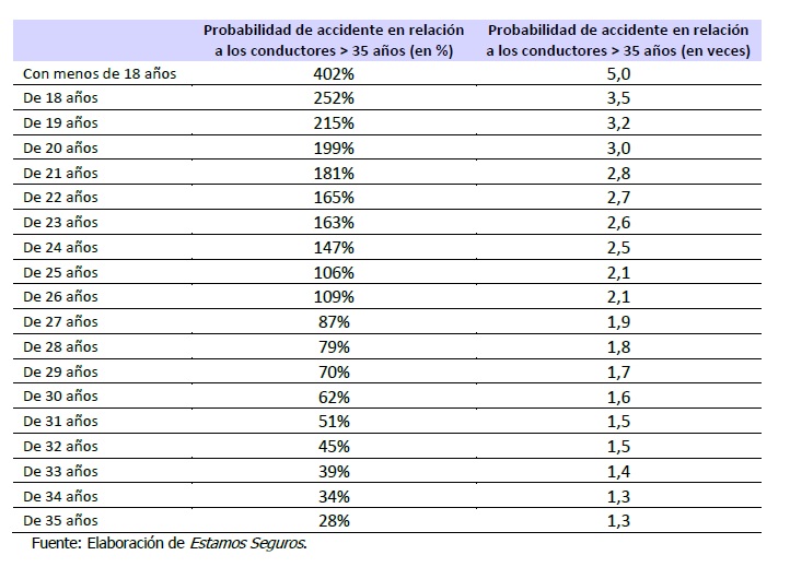 Los jóvenes menores de 35 años provocan un número más elevado de accidentes con víctimas que los conductores experimentados. De hecho, la probabilidad de que un joven tenga un percance de estas características es 1,6 veces mayor que lo padezca una persona que ha superado esa edad. Esta es una de las conclusiones del II Informe sobre la juventud al volante: Por qué es necesario ser prudente, elaborado por Estamos Seguros. Además, señala el informe, cuando se observa esta evolución en términos porcentuales se puede ver que la etapa más difícil es la anterior a los 26 años de edad, puesto que es el tiempo en el que la probabilidad de siniestro grave es el doble o superior.