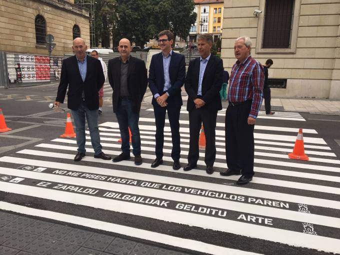 El Centro de Estudios Ponle Freno-AXA continúa trabajando para prevenir los atropellos. En esta ocasión, en colaboración con el Ayuntamiento de Vitoria-Gasteiz ha iniciado una campaña en la que han escrito mensajes en los pasos de peatones con consejos para prevenir los atropellos. Con un lenguaje coloquial se recuerda a los transeúntes la importancia de extremar la precaución cuando van a cruzar la vía.