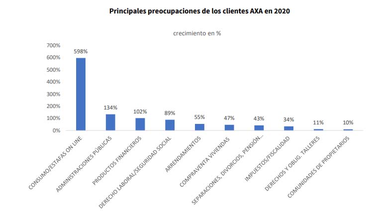 La incertidumbre provocada por el Covid, especialmente después del primer estado de alarma del que se va a cumplir un año próximamente, hizo elevar las consultas legales de los clientes de AXA a su compañía. Según los datos que ha dado a conocer la compañía estas preguntas se incrementaron hasta en un 32% en relación al año anterior.