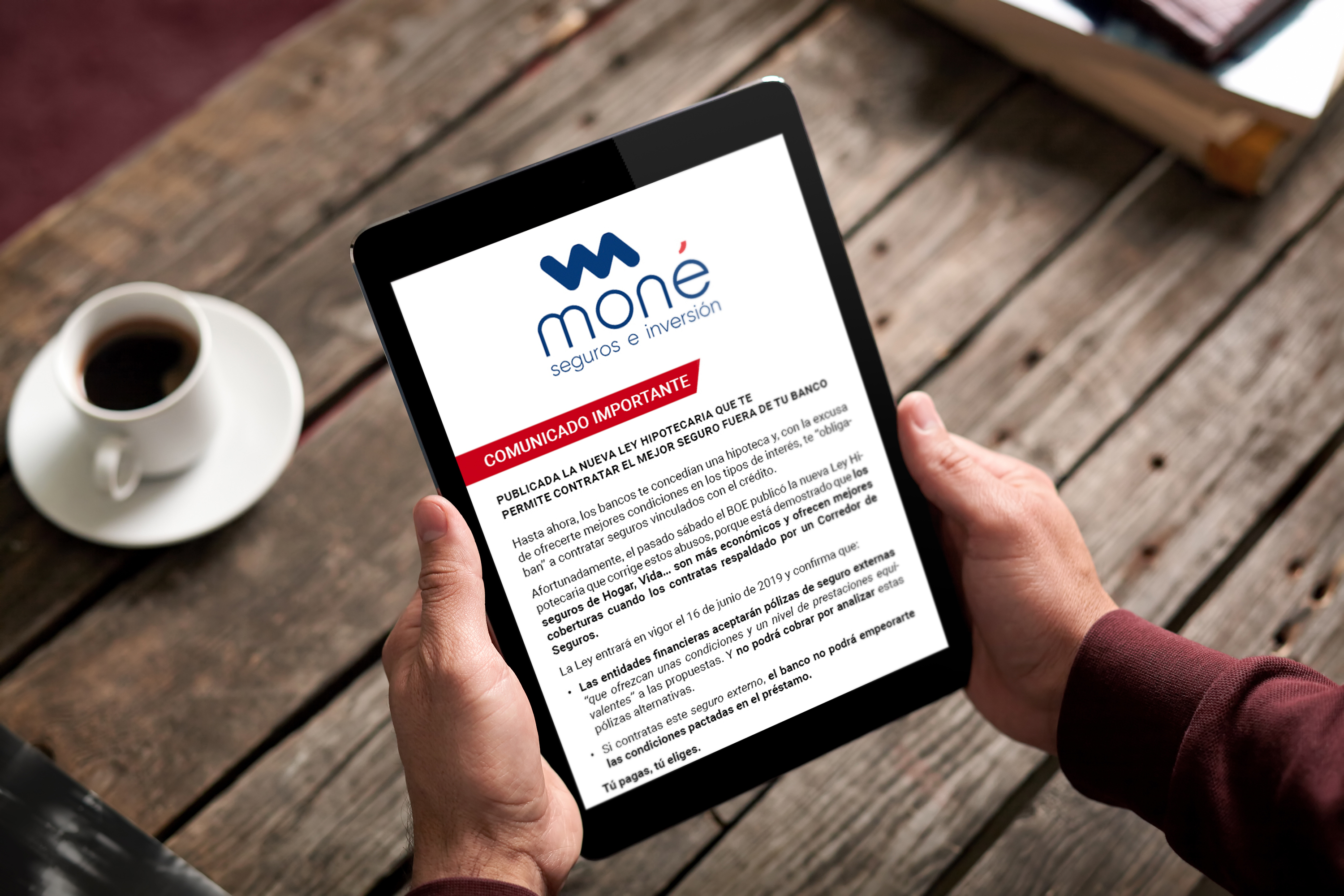 Bajo el título 'Publicada la nueva Ley Hipotecaria que te permite contratar el mejor seguro fuera del banco', se desarrollan algunos de los puntos de la norma que entrará en vigor el próximo 16 de junio. Se indica que "las entidades financieras aceptarán pólizas de seguros externas que ofrezcan unas condiciones y un nivel de prestaciones equivalentes a las propuestas". Además, se informa que la entidad financiera "no podrá cobrar por analizar estas pólizas alternativas" y "el banco no podrá empeorar las condiciones pactadas en el préstamo".