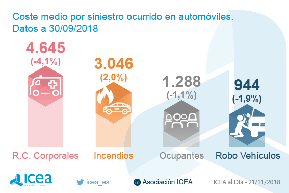 Costes medios de los siniestros en Automóviles a septiembre de 2018